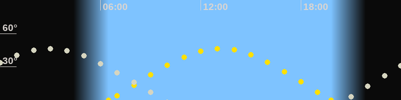 | Höchster Sonnenstand (Kulmination) | 13:09 Uhr (h = 46.6°) |