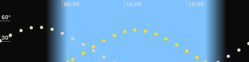 | Sonnenaufgang | 06:30 Uhr im Osten (αAz = 78.1°) |