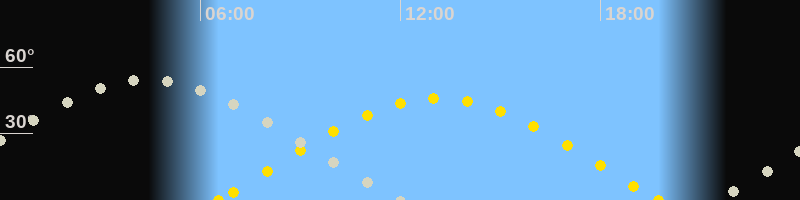 | Sonnenaufgang | 06:32 Uhr im Osten (αAz = 78.7°) |