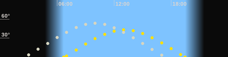 | Höchster Sonnenstand (Kulmination) | 13:06 Uhr (h = 43.2°) |