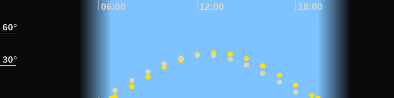 | Sonnenaufgang | 06:47 Uhr im Osten (αAz = 84.8°) |