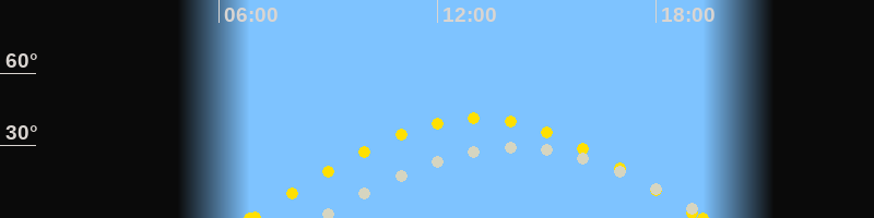| Höchster Stand (Kulmination) | 14:08 Uhr (h=29.7°) |