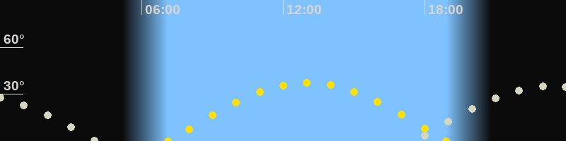 | Sonnenaufgang | 07:06 Uhr im Osten (αAz = 92.1°) |