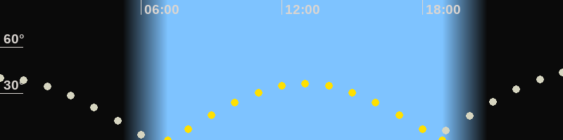 | Höchster Sonnenstand (Kulmination) | 13:00 Uhr (h = 36.6°) |