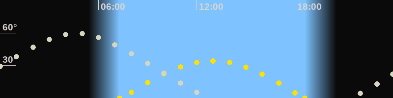 | Sonnenaufgang | 07:18 Uhr im Osten (αAz = 97°) |