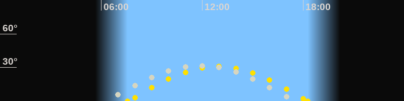 | Sonnenaufgang | 07:33 Uhr im Osten (αAz = 102.5°) |