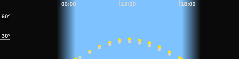 | Höchster Sonnenstand (Kulmination) | 12:55 Uhr (h = 30.5°) |