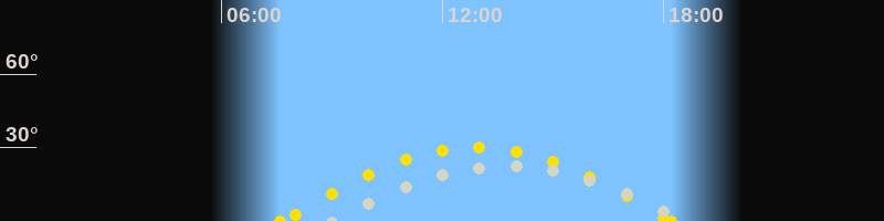 | Höchster Sonnenstand (Kulmination) | 12:55 Uhr (h = 30.1°) |