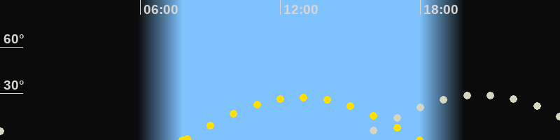 | Höchster Sonnenstand (Kulmination) | 12:54 Uhr (h = 27.6°) |