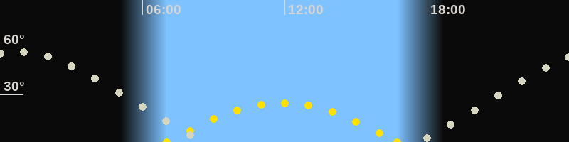 | Höchster Sonnenstand (Kulmination) | 11:53 Uhr (h = 24.9°) |