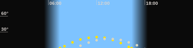 | Höchster Sonnenstand (Kulmination) | 11:54 Uhr (h = 20.6°) |
