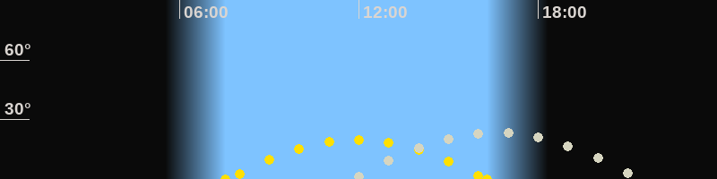 | Höchster Sonnenstand (Kulmination) | 11:55 Uhr (h = 19.9°) |