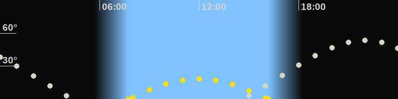 | Höchster Sonnenstand (Kulmination) | 11:57 Uhr (h = 18.4°) |