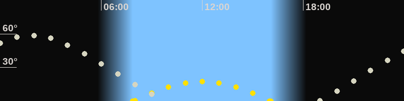 | Höchster Sonnenstand (Kulmination) | 11:59 Uhr (h = 17.4°) |