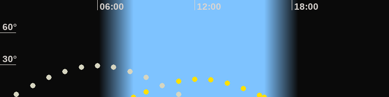 | Höchster Sonnenstand (Kulmination) | 12:15 Uhr (h = 16.7°) |