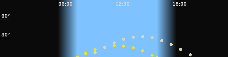 | Höchster Sonnenstand (Kulmination) | 12:19 Uhr (h = 18.1°) |