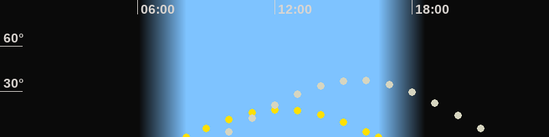| Höchster Sonnenstand (Kulmination) | 12:19 Uhr (h = 18.2°) |