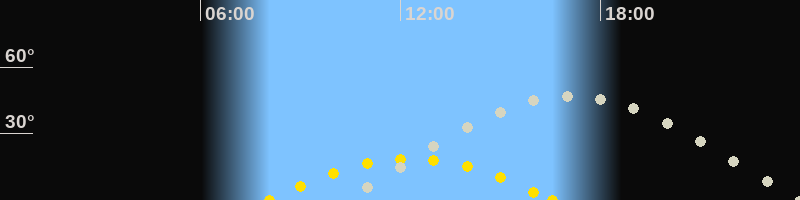 | Höchster Sonnenstand (Kulmination) | 12:20 Uhr (h = 18.6°) |