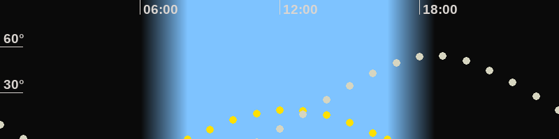 | Sonnenaufgang | 08:03 Uhr im Südosten (αAz = 122.4°) |