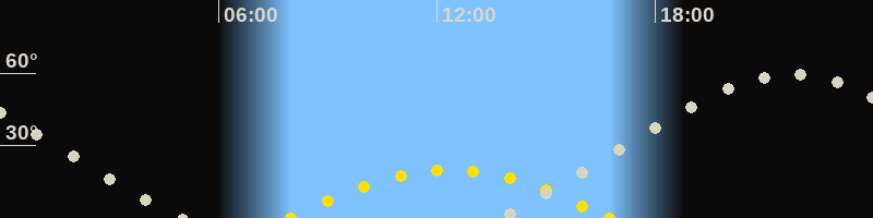 | Höchster Sonnenstand (Kulmination) | 12:22 Uhr (h = 19.9°) |