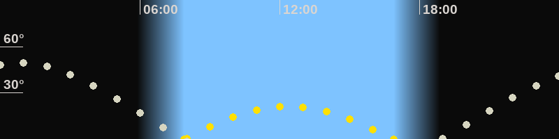 | Höchster Sonnenstand (Kulmination) | 12:23 Uhr (h = 21.2°) |