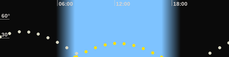 | Höchster Sonnenstand (Kulmination) | 12:23 Uhr (h = 21.7°) |