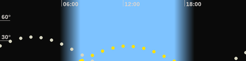 | Höchster Sonnenstand (Kulmination) | 12:23 Uhr (h = 22°) |