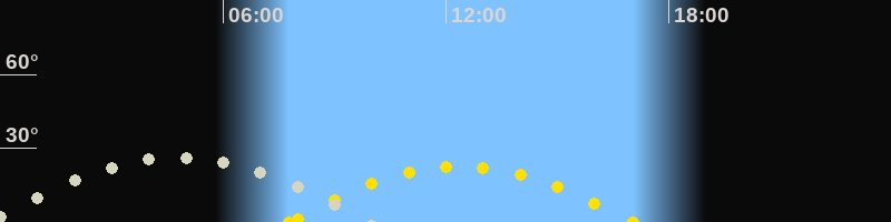 | Höchster Sonnenstand (Kulmination) | 12:23 Uhr (h = 22.6°) |