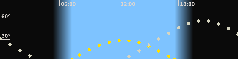 | Höchster Sonnenstand (Kulmination) | 12:23 Uhr (h = 28.5°) |