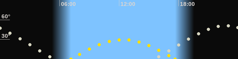 | Höchster Sonnenstand (Kulmination) | 12:23 Uhr (h = 29.6°) |