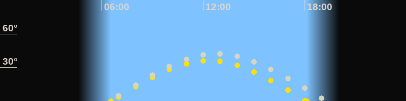 Höchster Sonnenstand (Kulmination)12:19 Uhr (h = 36.1°)