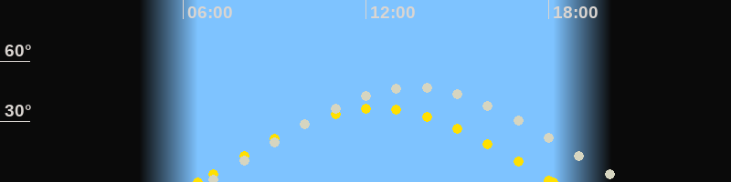 Höchster Sonnenstand (Kulmination)12:19 Uhr (h = 36.5°)