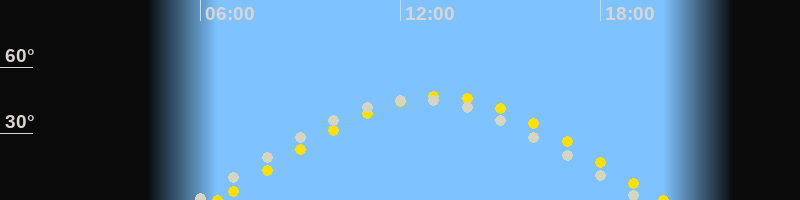| Sonnenaufgang | 06:30 Uhr im Osten (αAz = 77.2°) |