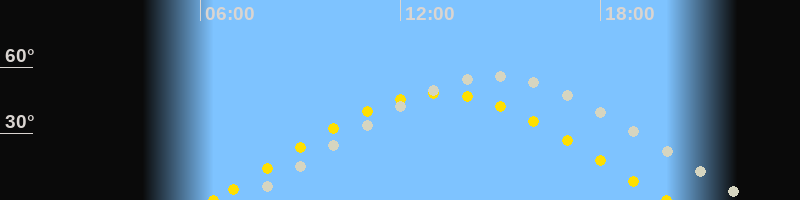 | Sonnenaufgang | 06:23 Uhr im Osten (αAz = 75.4°) |