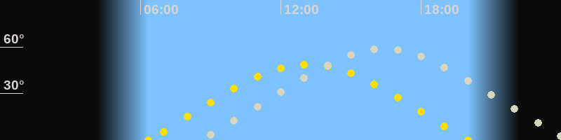 | Sonnenaufgang | 06:19 Uhr im Osten (αAz = 74.2°) |
