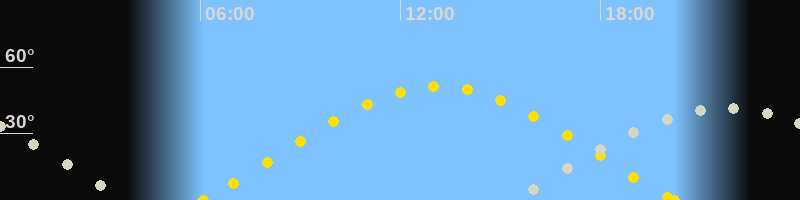 | Sonnenaufgang | 06:05 Uhr im Osten (αAz = 70.3°) |