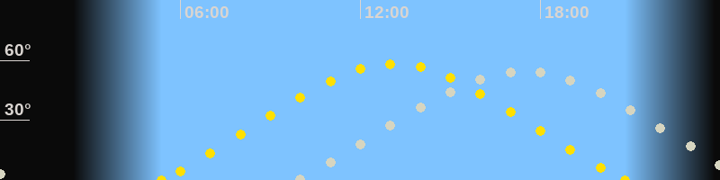 | Höchster Sonnenstand (Kulmination) | 13:06 Uhr (h = 58.3°) |