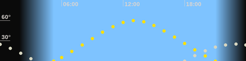 Höchster Sonnenstand (Kulmination)13:06 Uhr (h = 59.8°)