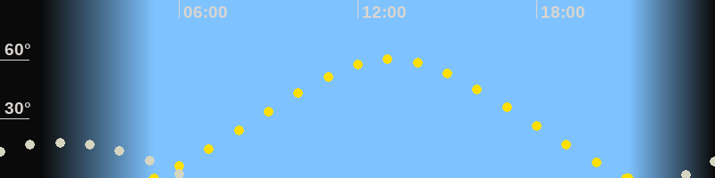 | Höchster Sonnenstand (Kulmination) | 13:07 Uhr (h = 60.5°) |