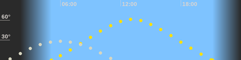 | Höchster Sonnenstand (Kulmination) | 13:07 Uhr (h = 61.1°) |