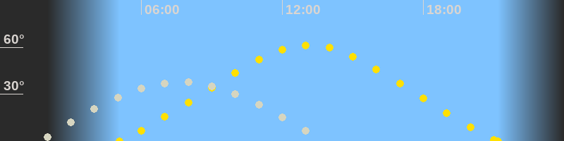 Höchster Sonnenstand (Kulmination)13:08 Uhr (h = 61.4°)