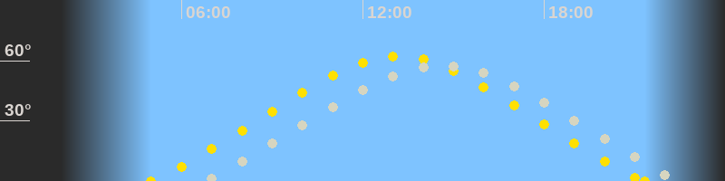 | Höchster Sonnenstand (Kulmination) | 13:09 Uhr (h = 62.3°) |