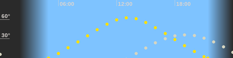 | Höchster Sonnenstand (Kulmination) | 13:11 Uhr (h = 62.6°) |