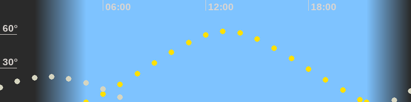 | Höchster Sonnenstand (Kulmination) | 13:12 Uhr (h = 62.6°) |