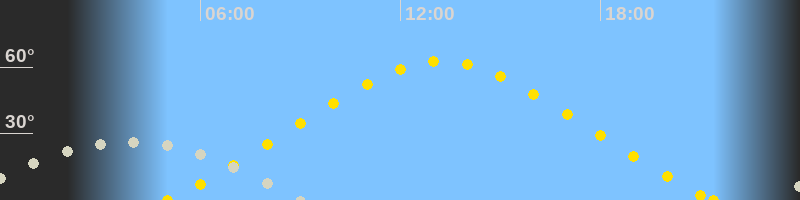 | Höchster Sonnenstand (Kulmination) | 13:13 Uhr (h = 62.6°) |