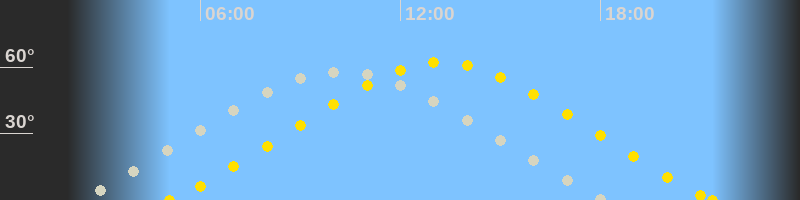 | Höchster Sonnenstand (Kulmination) | 13:14 Uhr (h = 62.1°) |