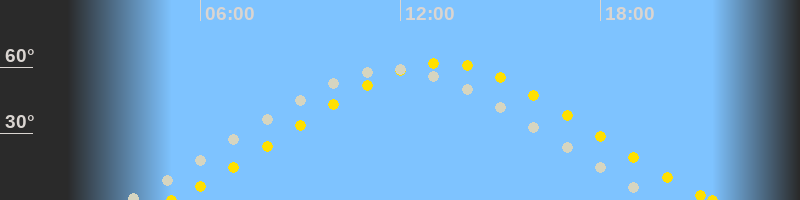 | Höchster Sonnenstand (Kulmination) | 13:15 Uhr (h = 61.9°) |