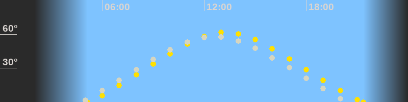 | Höchster Sonnenstand (Kulmination) | 13:15 Uhr (h = 61.8°) |