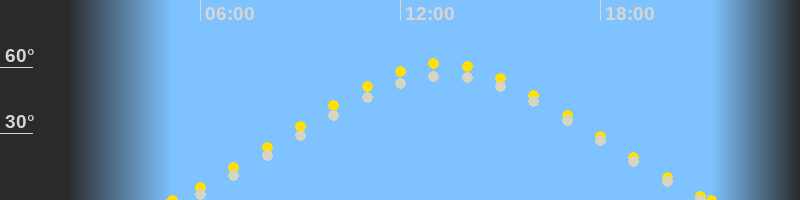 | Höchster Sonnenstand (Kulmination) | 13:15 Uhr (h = 61.7°) |