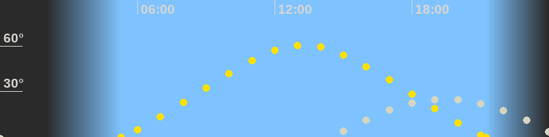 | Höchster Sonnenstand (Kulmination) | 13:16 Uhr (h = 60.6°) |